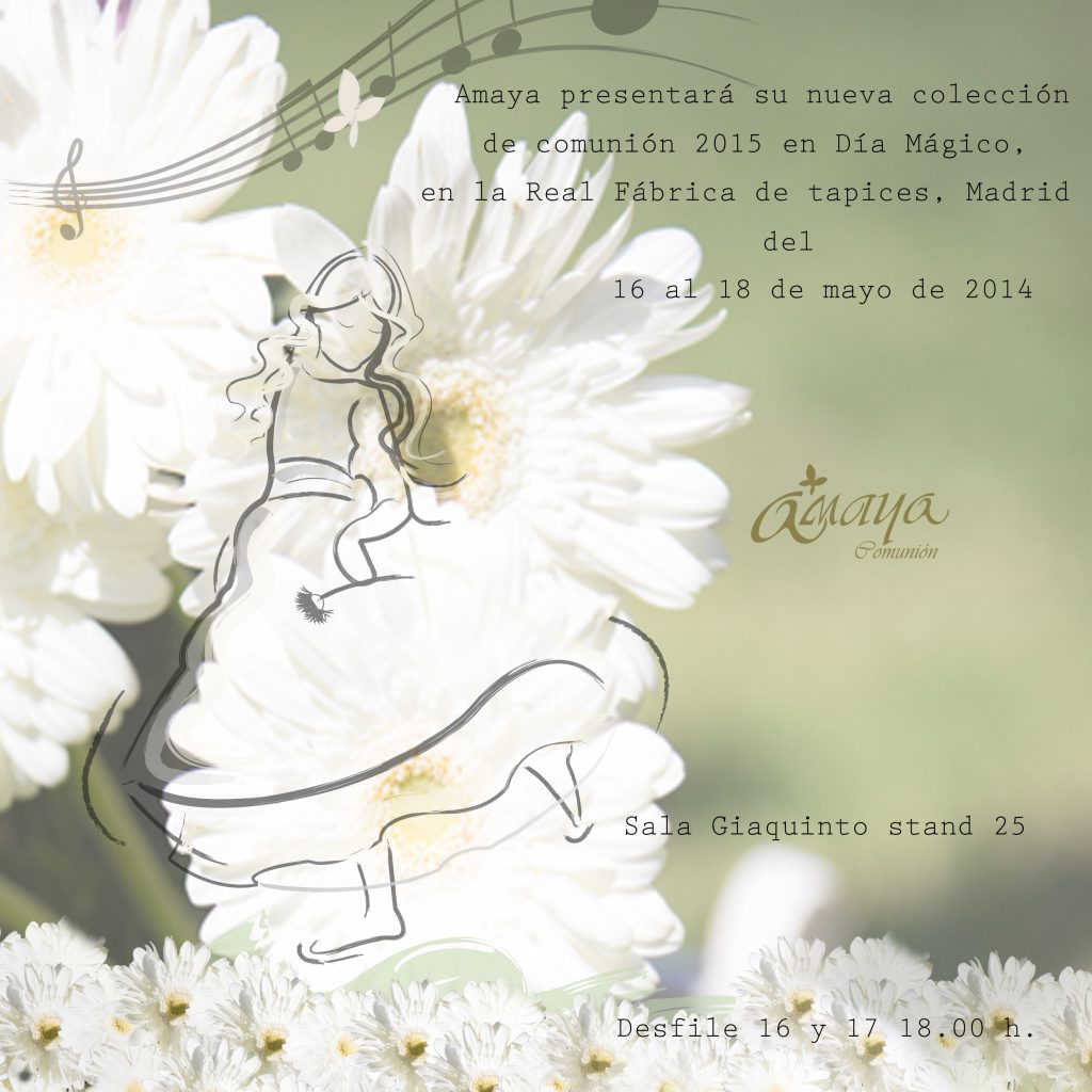 La nueva colección de comunión Primavera /verano 2015 que Amaya presenta en Día Mágico by FIMI, viaja con la familia TRAPP y se contagia del espíritu de «Sonrisas y lagrimas». Conoce su colección en la Sala Giaquinto, Stand 25.