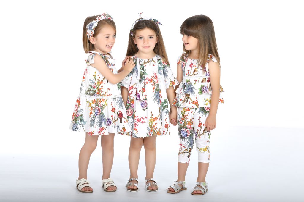 The new Pan con Chocolate Spring-Summer 2019 collection remains committed to colourful prints, a style with tropical and multicolored fish printed fabrics, as well as flowers, always present in our collections. One of the trendy elements are the stripes, as well as tulle, chiffon with flounces, fantasy details, and wonderful embroideries.
